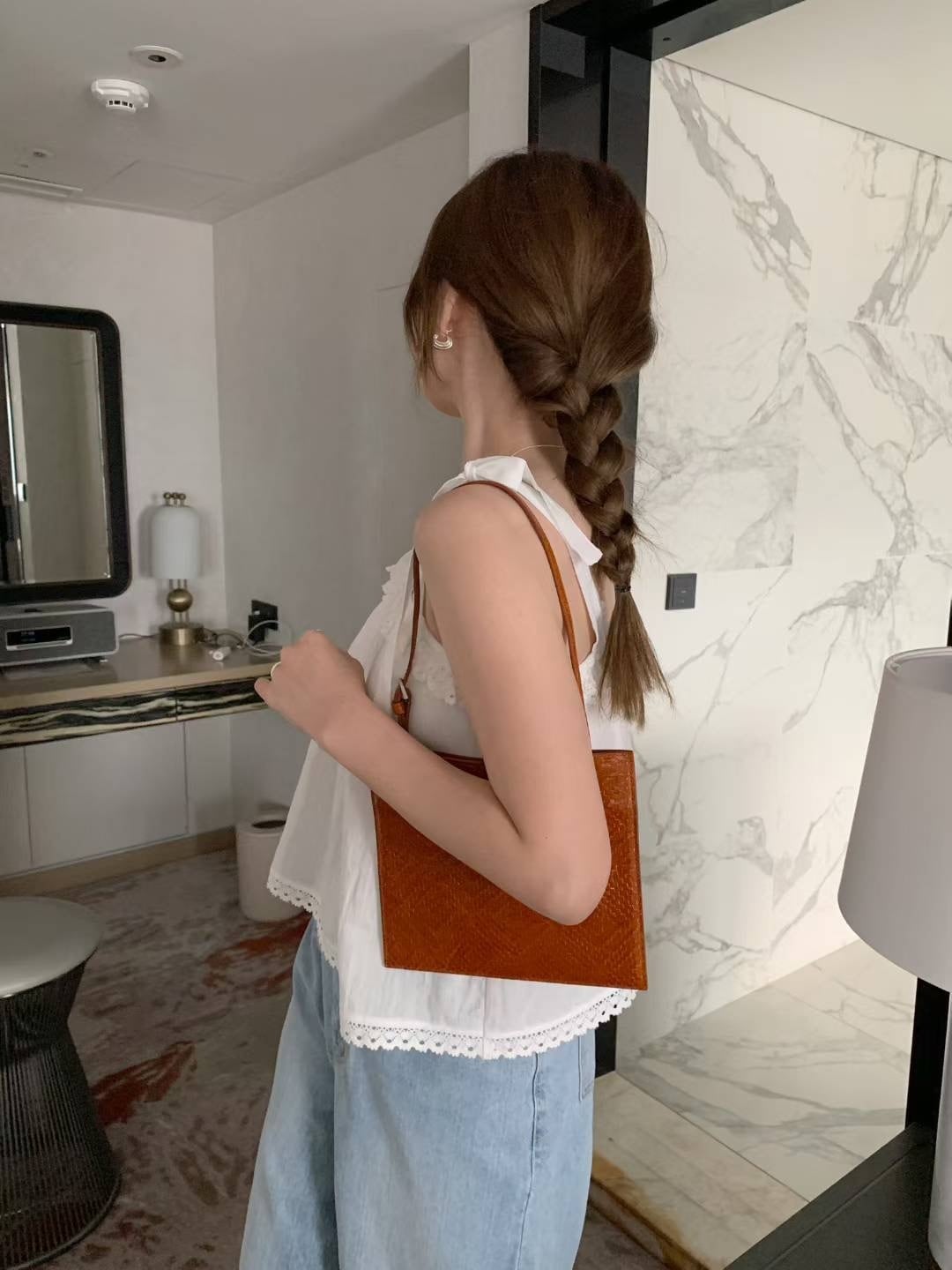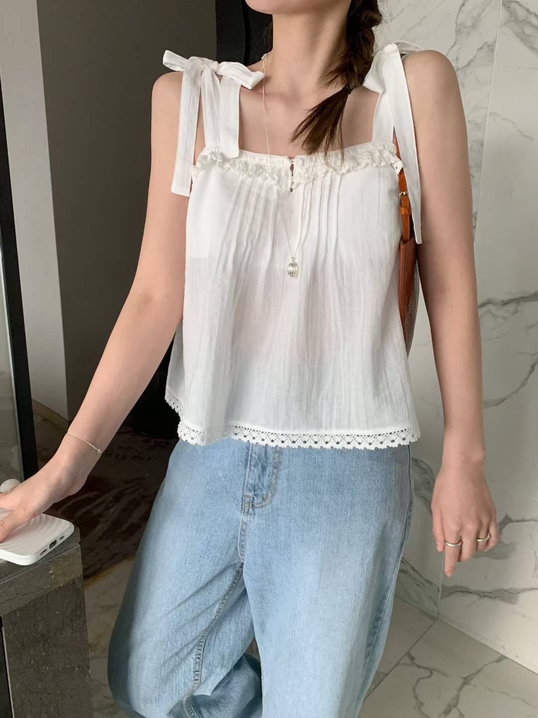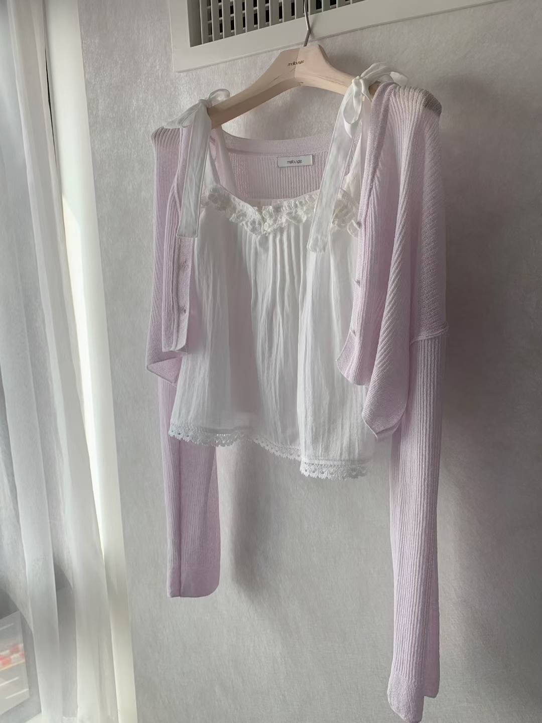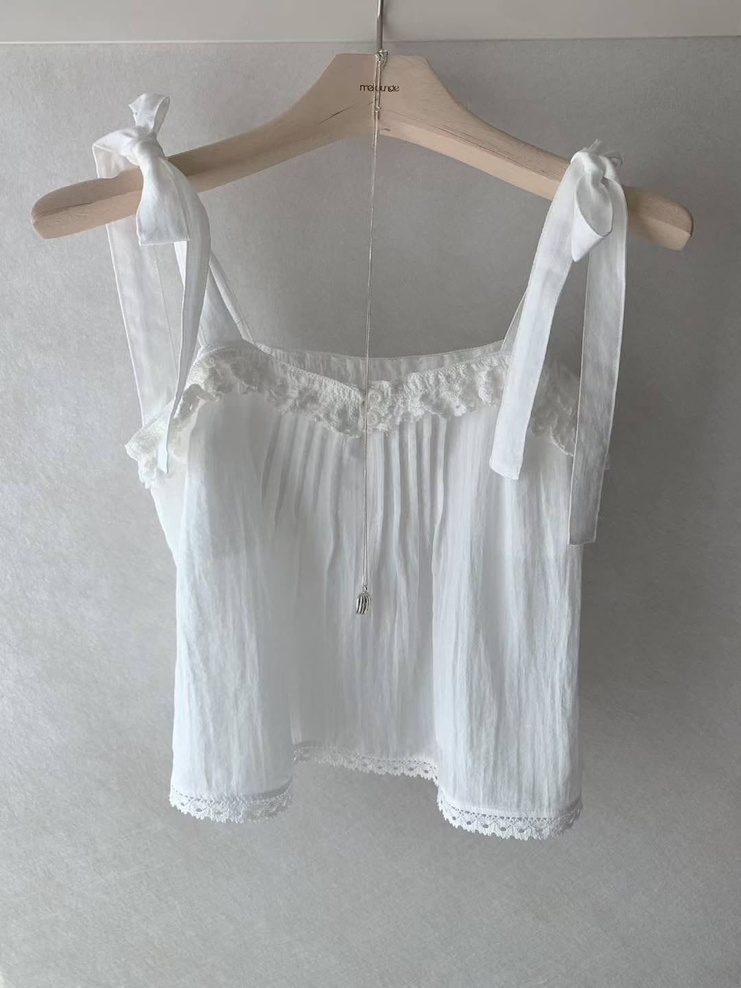 (即納)mellounge / Tie pintuck bustier blouse