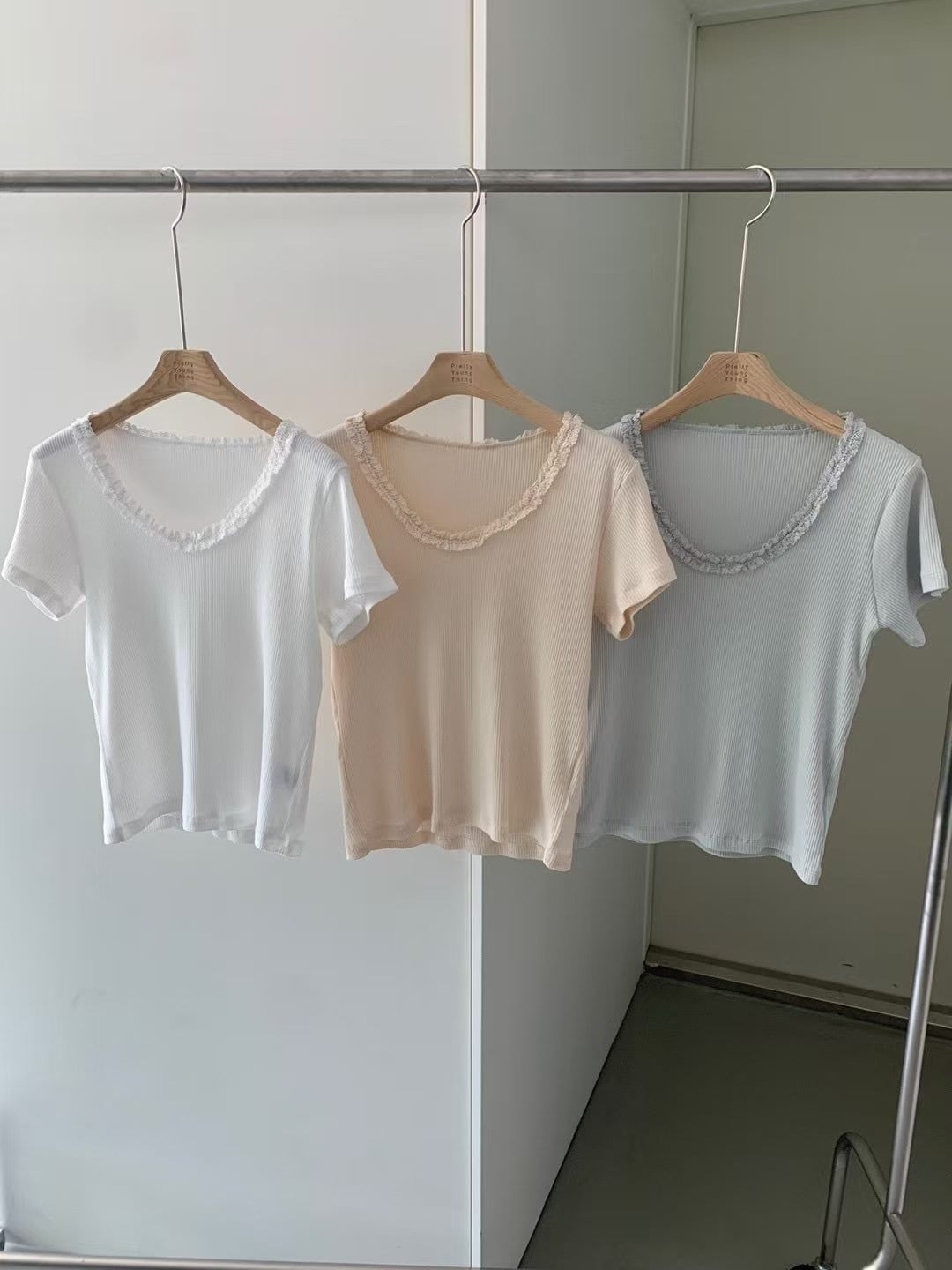 (即納)P.Y.T / Blooming u-neck tee / ivory