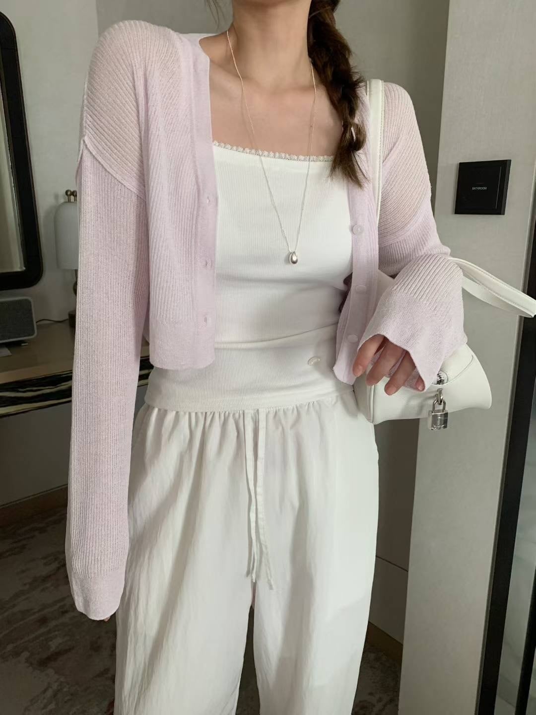 (即納)mellounge / Summer crop cardigan / lilac
