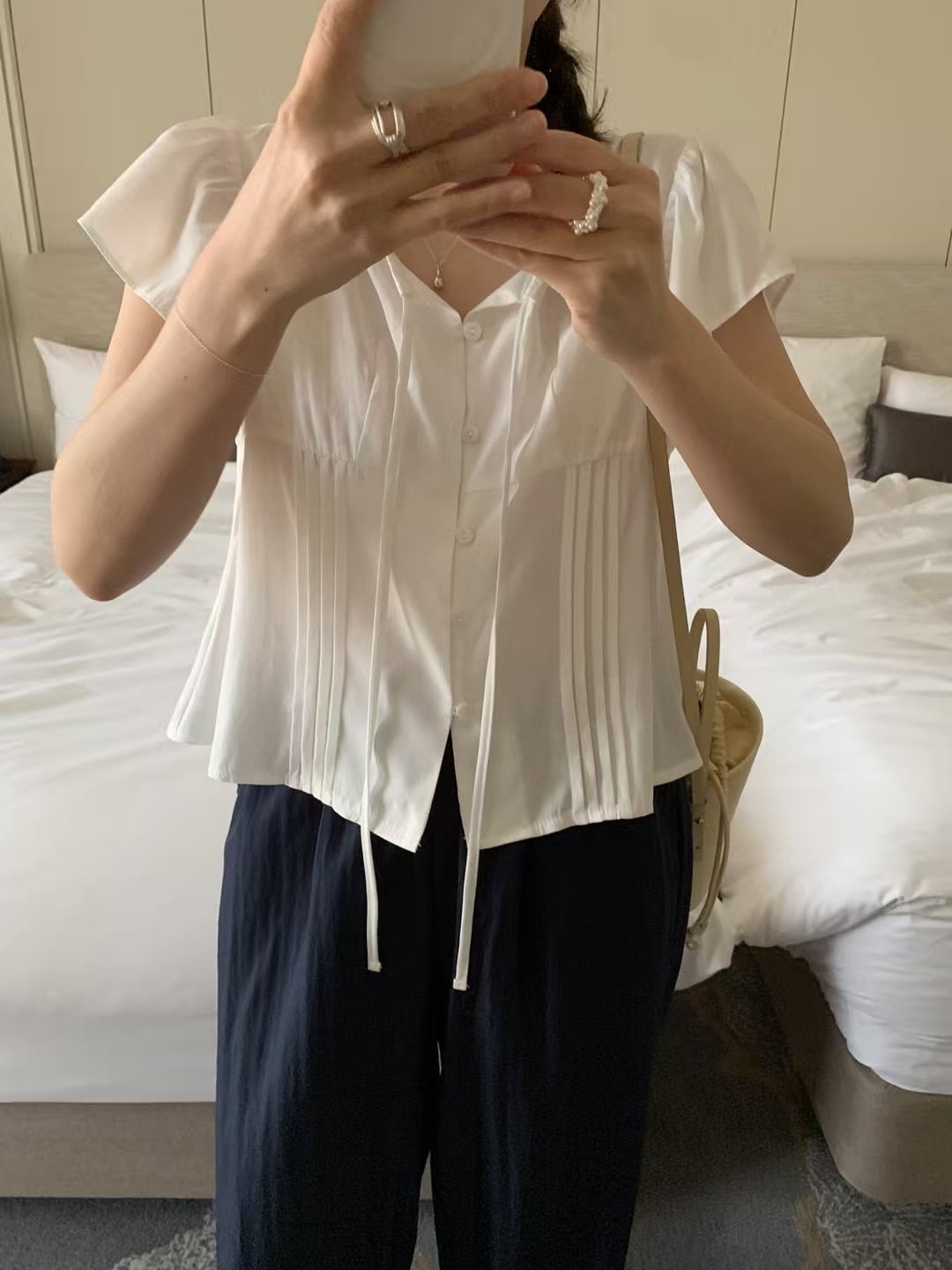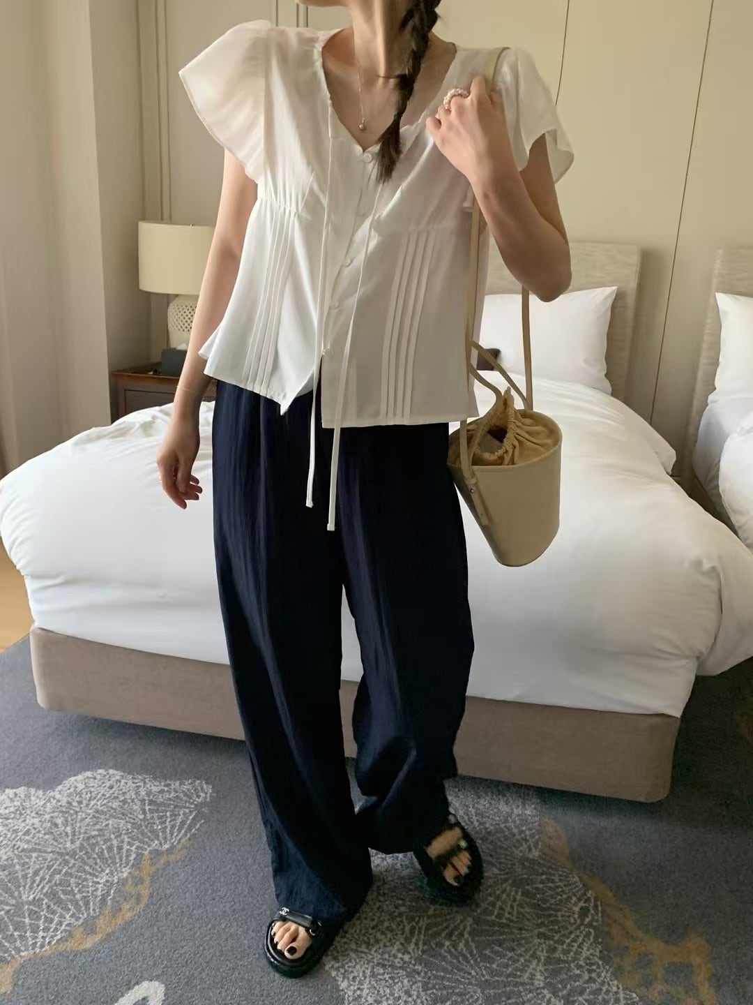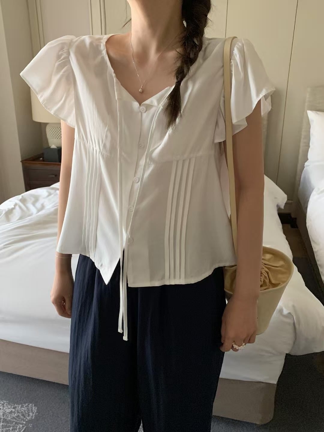 (即納)mellounge / Aloha strap blouse / ivory