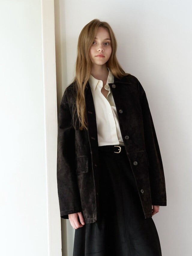 (予約) verveine / Louise pig leather suede half jacket / 2color