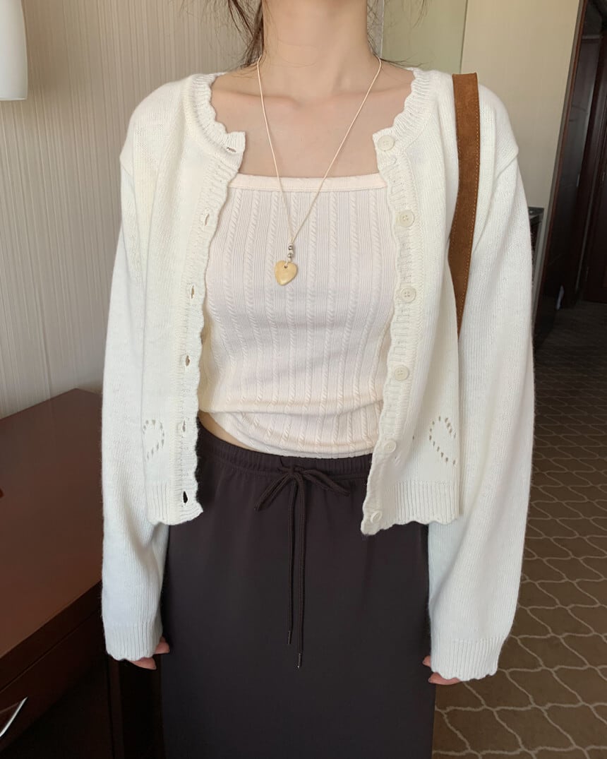 (即納)ezediary / Heart eyelet knit cardigan / ivory