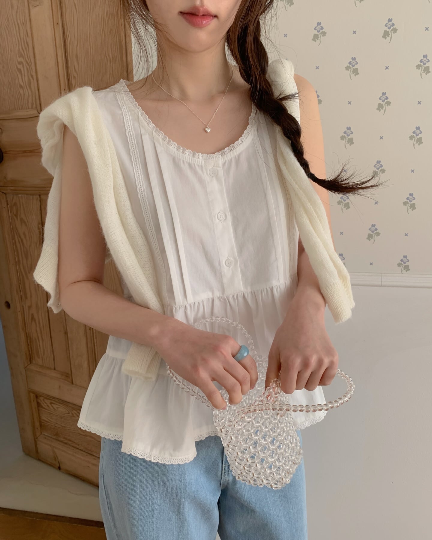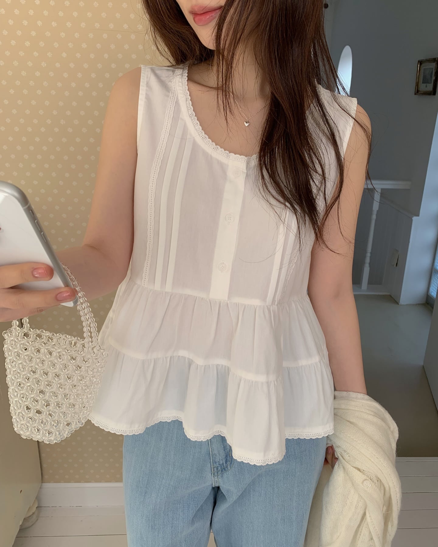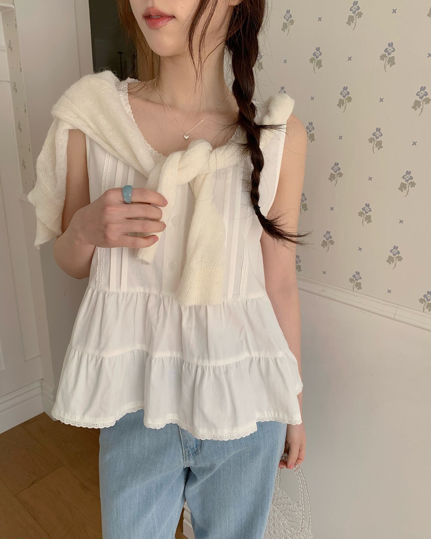 (予約)ezediary / Half Lace Sleeveless Blouse