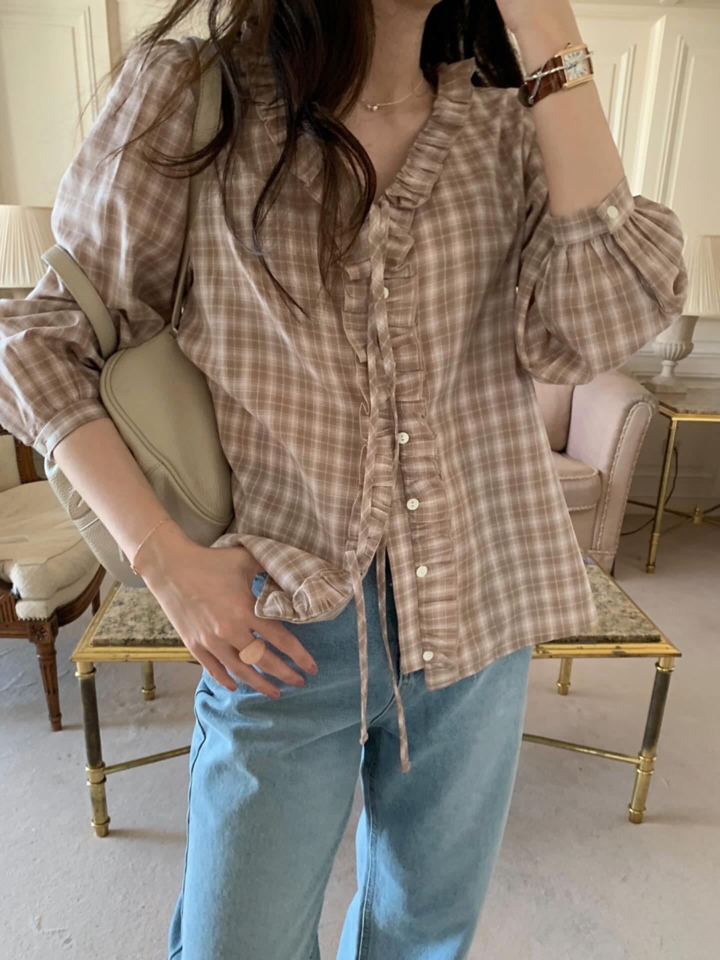 (予約)P.Y.T / Handel Check Blouse / 2color
