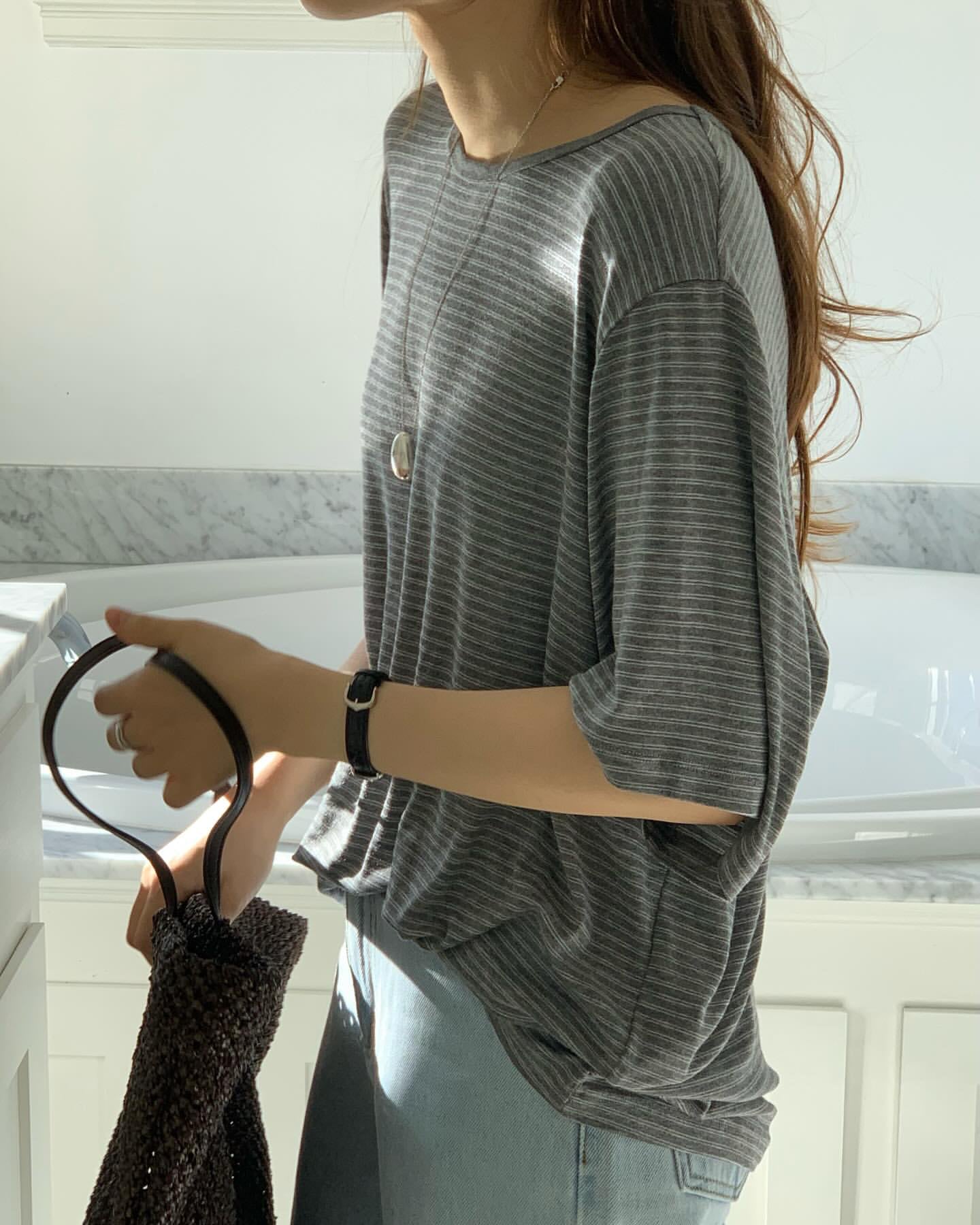 (予約) ounce / Stripe boxy tee / 2color