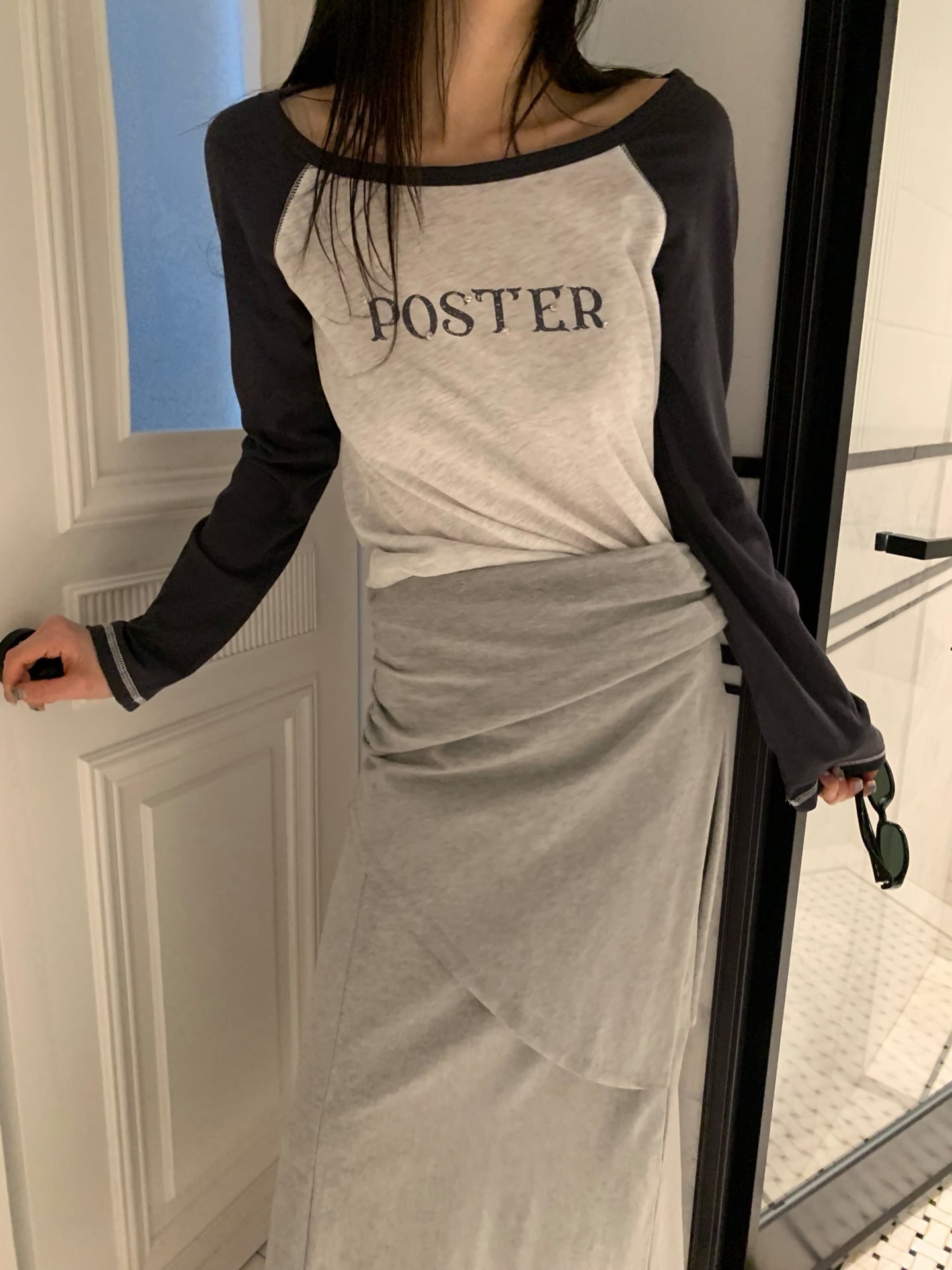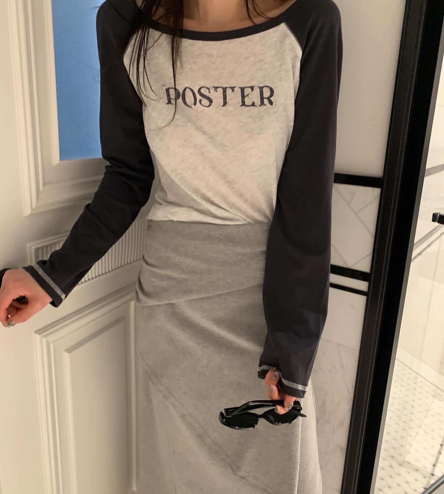 (即納)poster / Beaded Raglan T-Shirt / navy