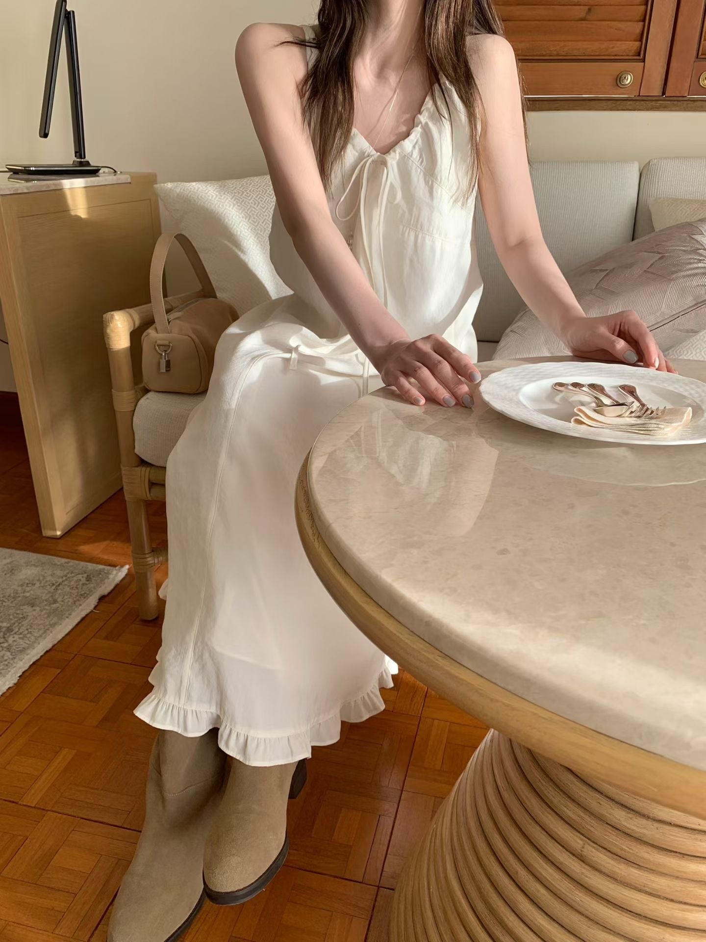 (即納)mellounge / Frill two-way dress / ivory