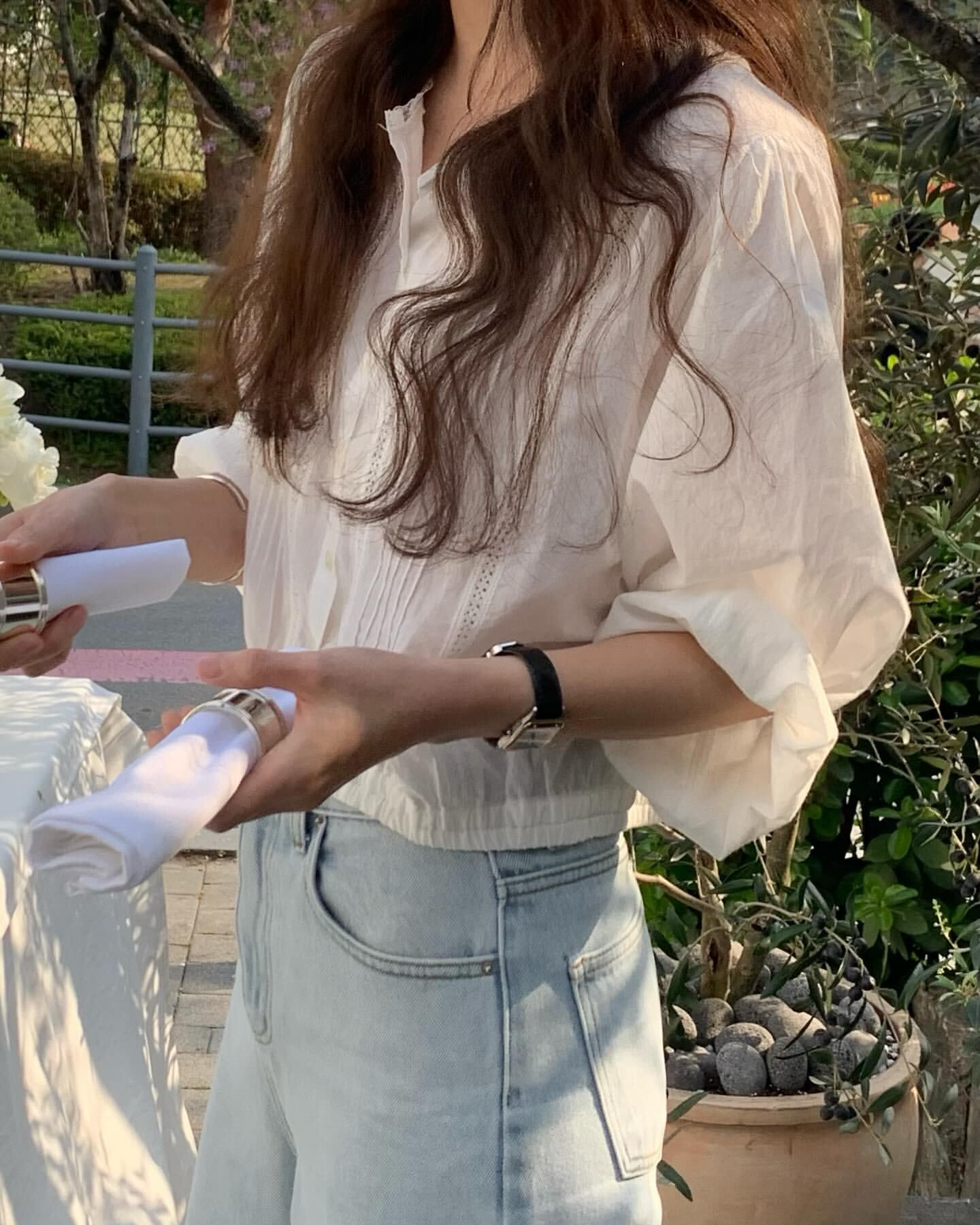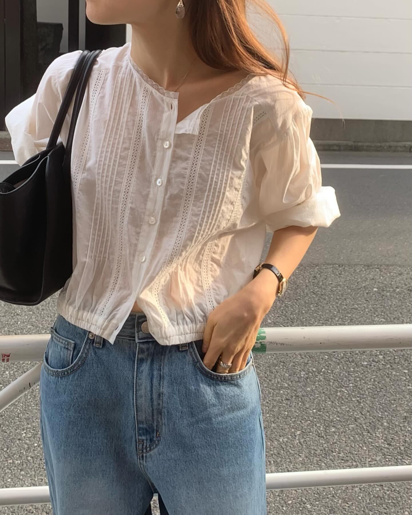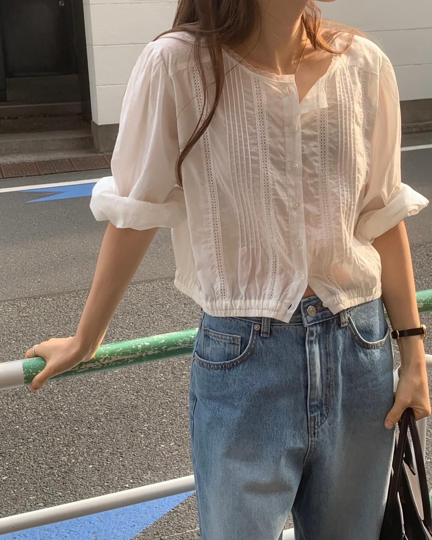 (予約) ounce / Banding lace blouse