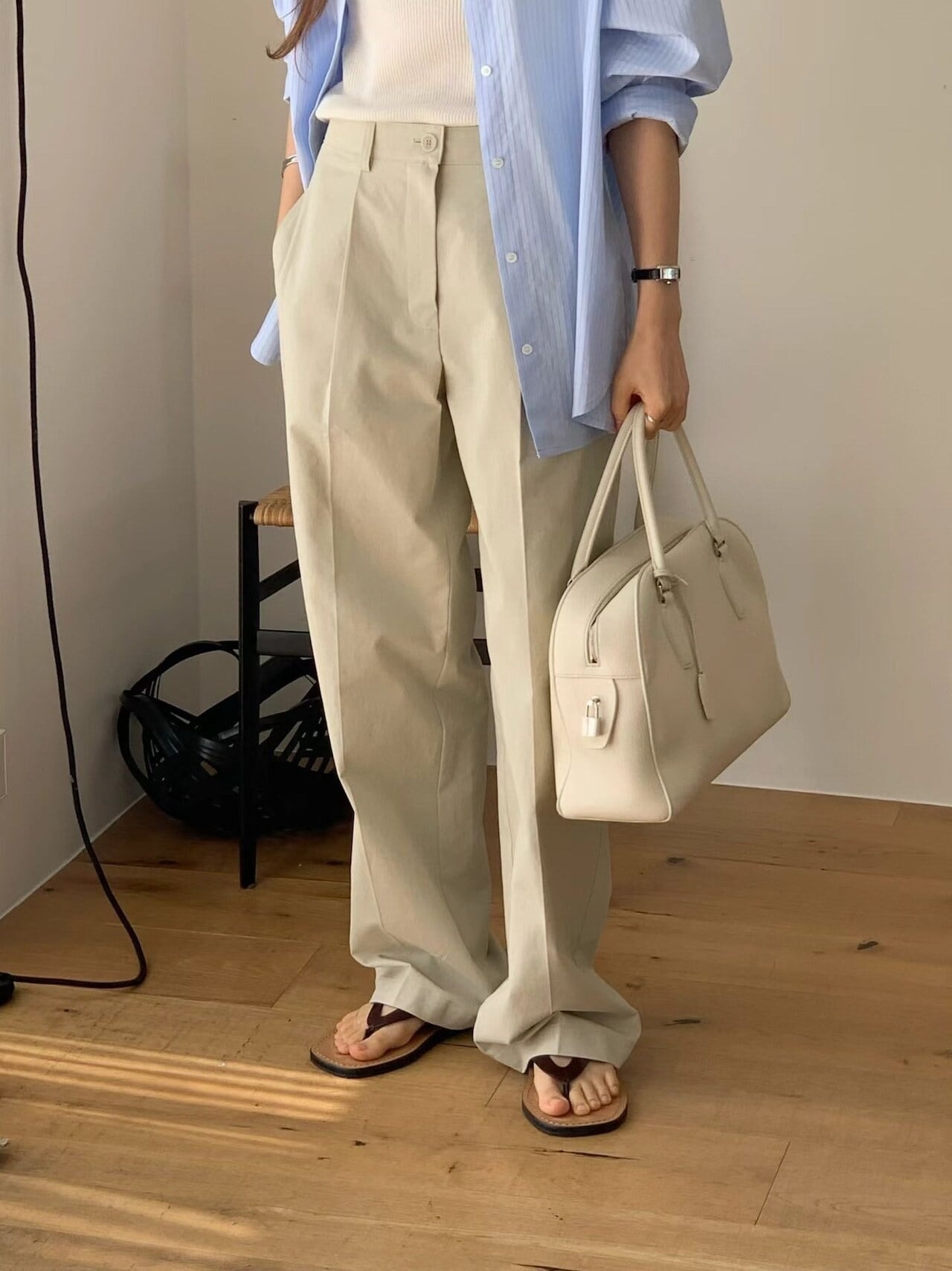 (予約) ounce / Cotton one tuck pants / 2color