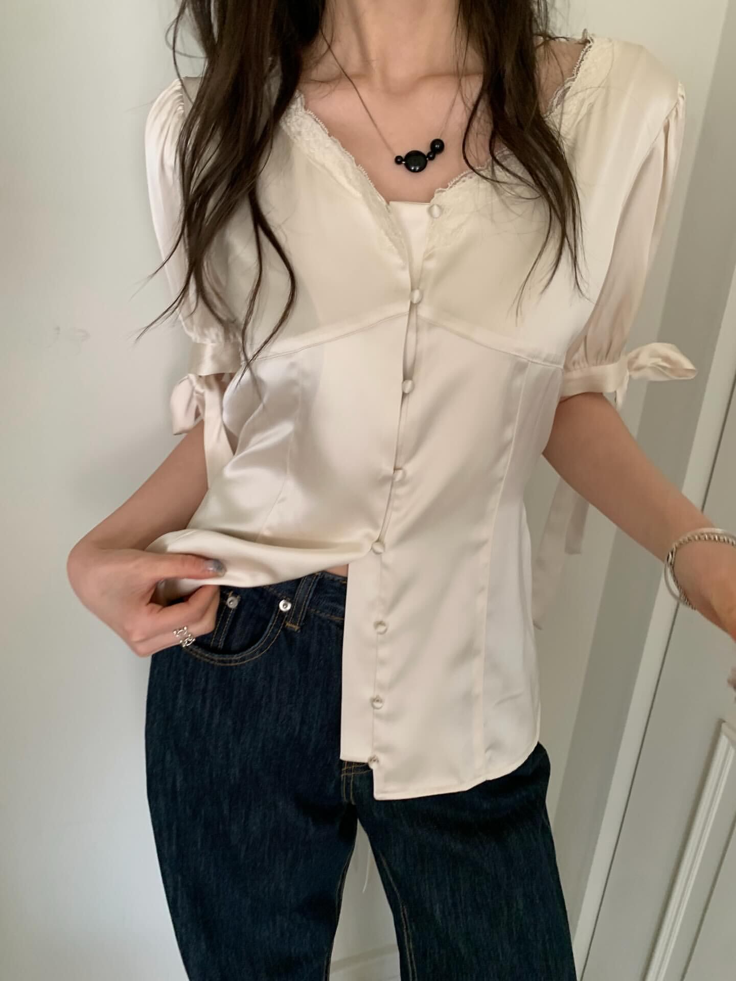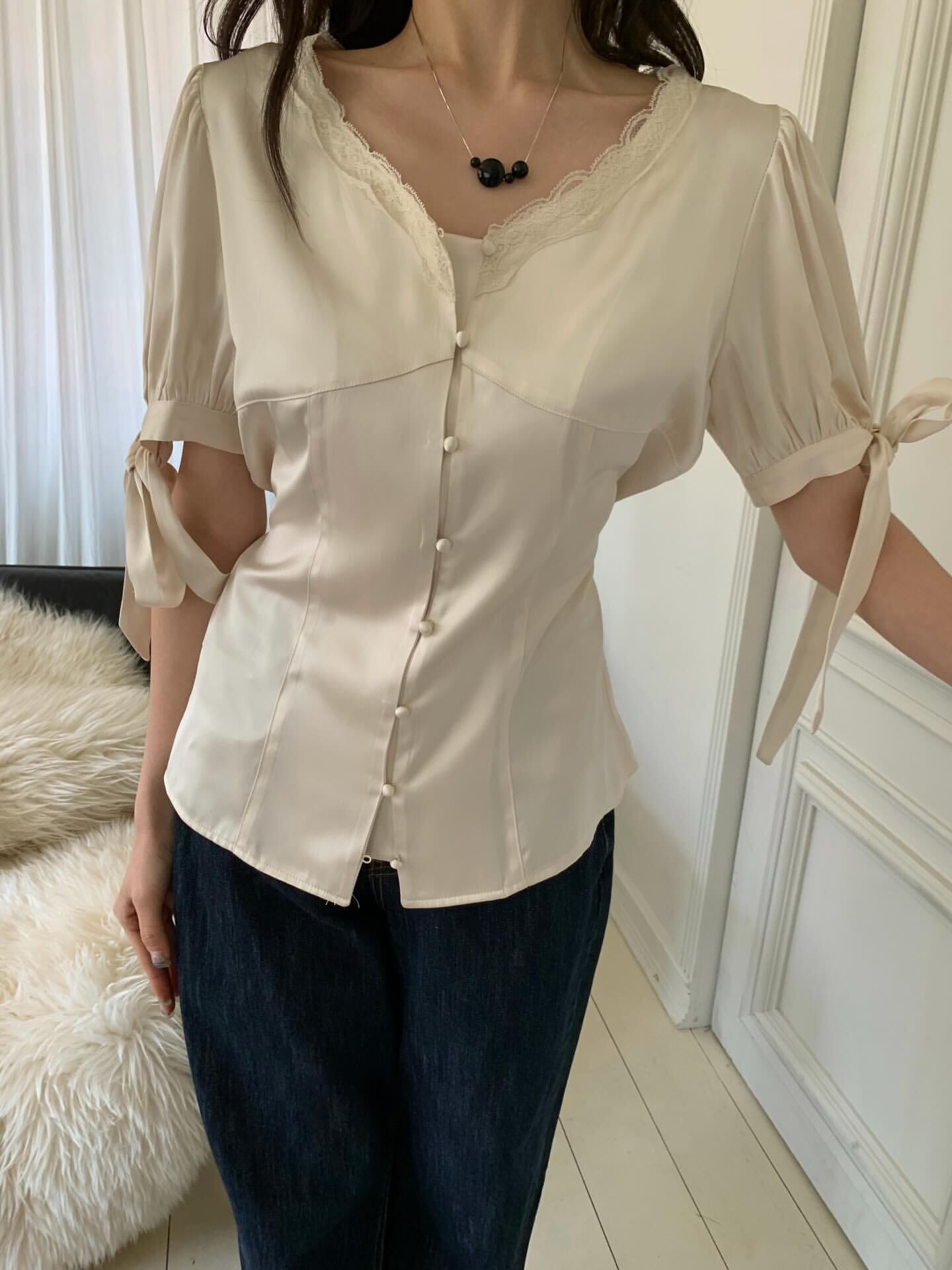 (予約)poster / Ray Ribbon Blouse / 3color