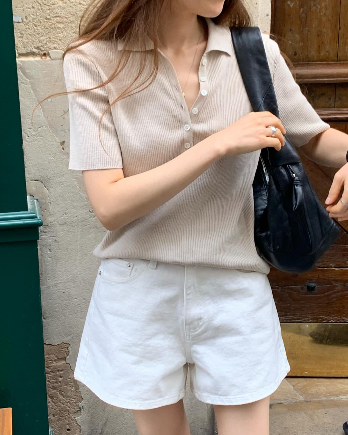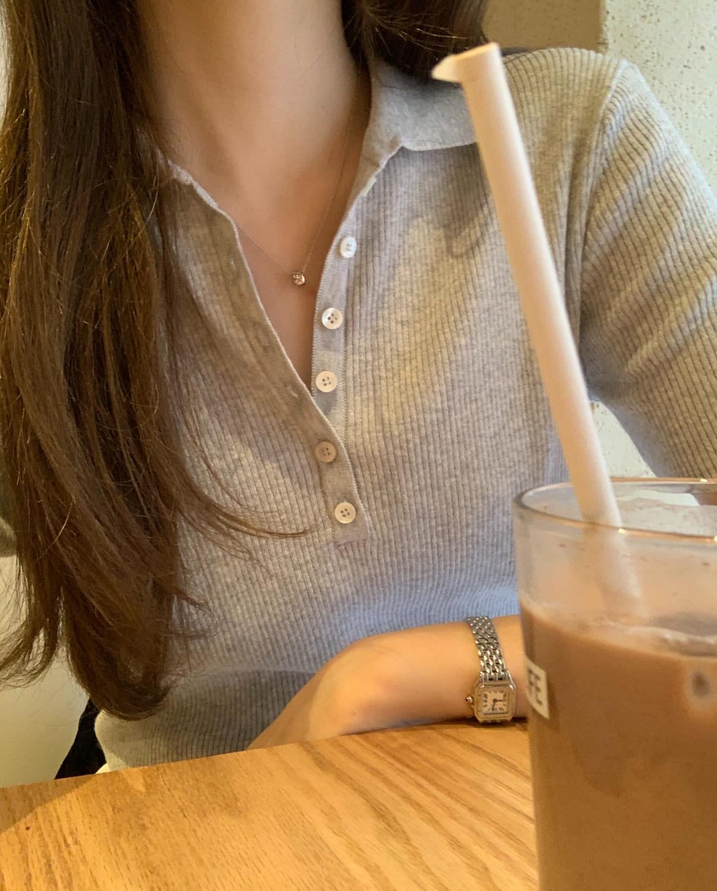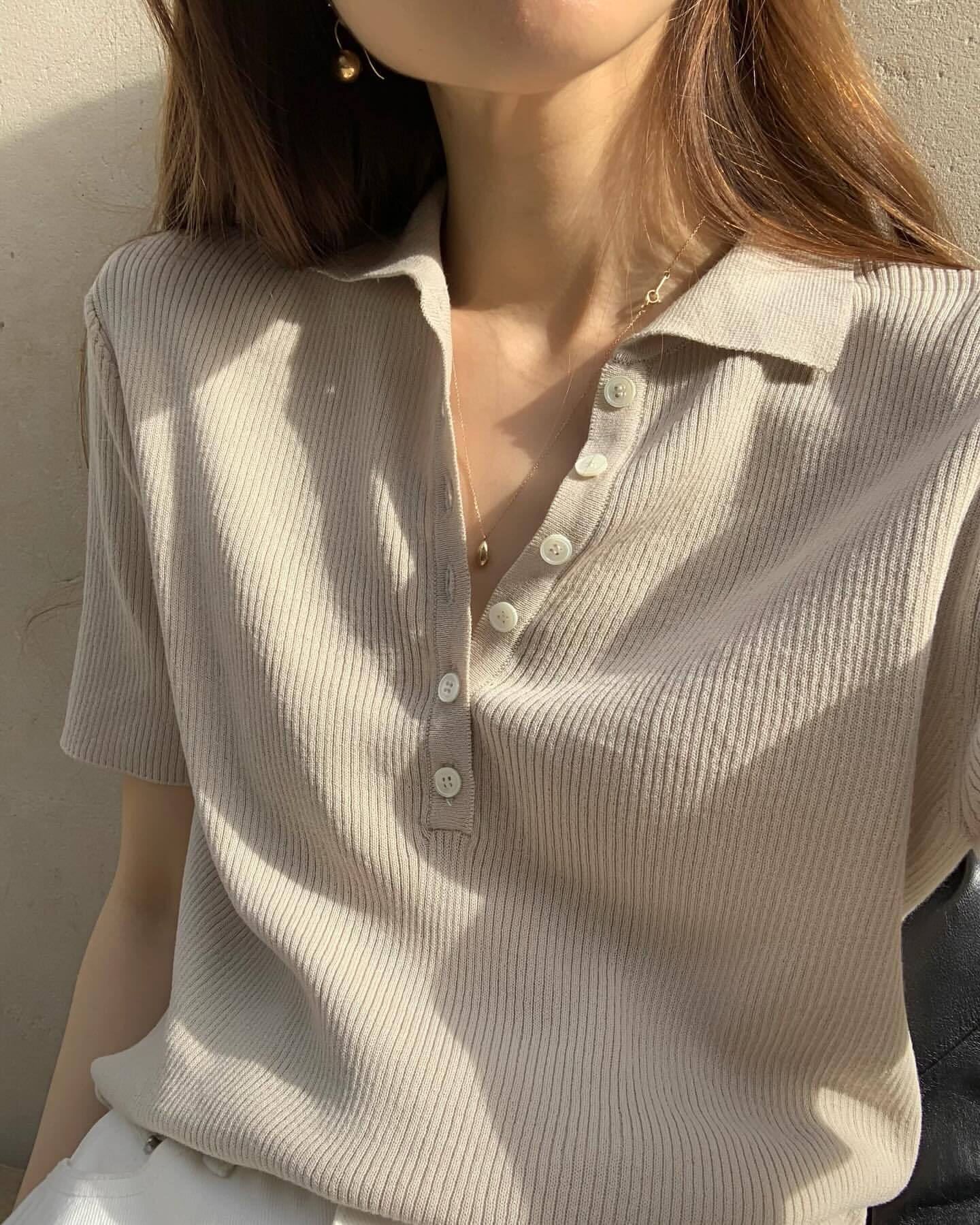 (予約) ounce / Cotton collar half knit / 2color