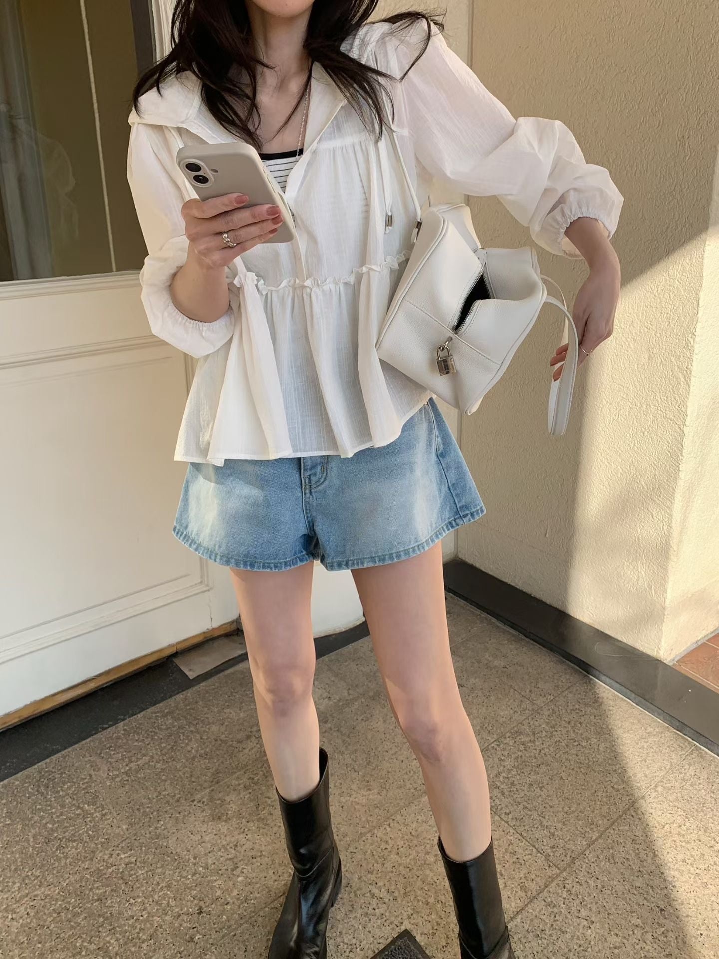 (予約)mellounge / Mini Short Denim Pants