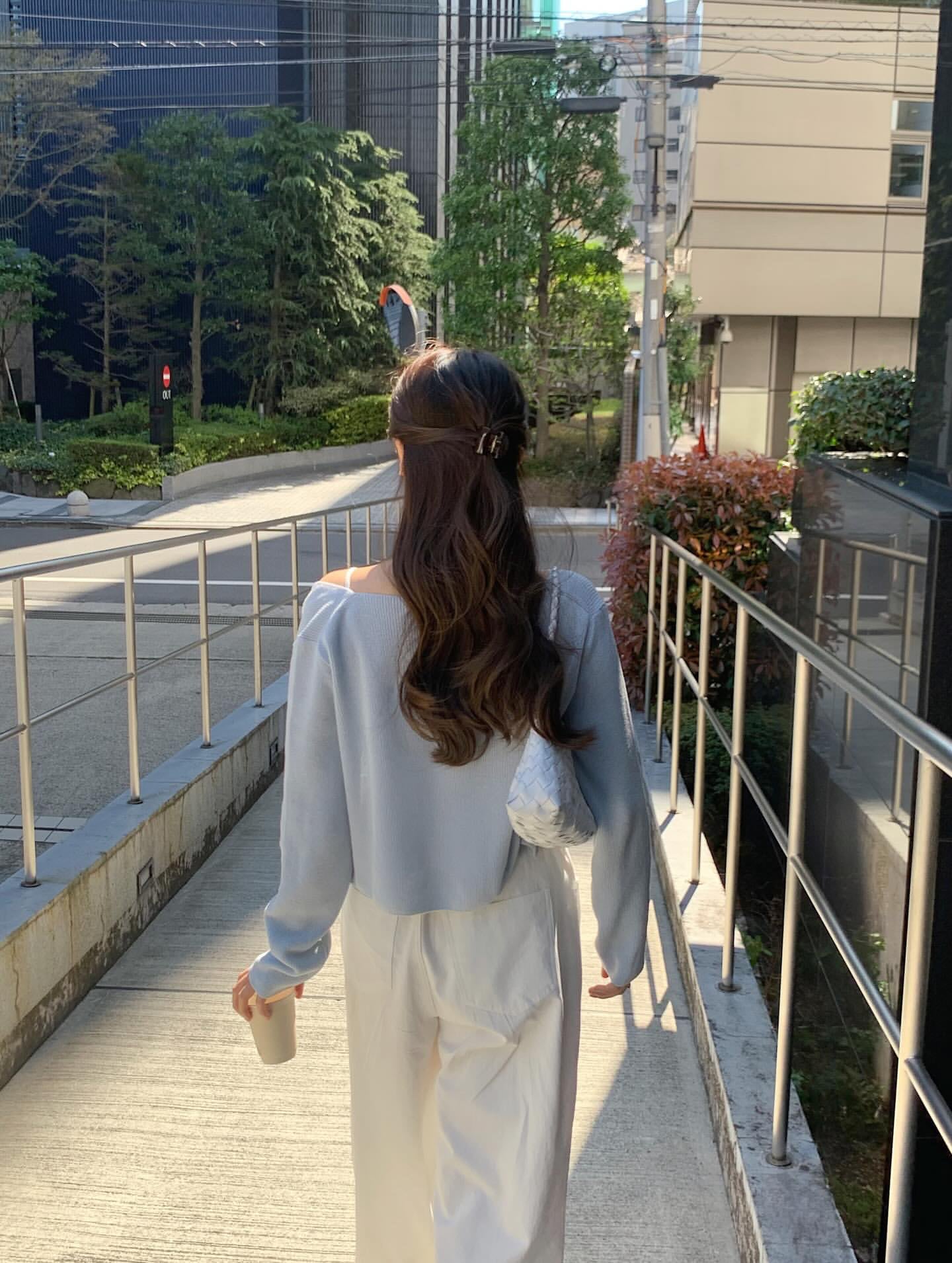 肩のラインに沿ったネックデザインと、すっきりとした袖のラインで華奢に見えるよう、装飾をあえて省きました。